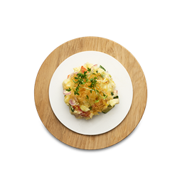 Japanese potato salad with cucumber, red onion, carrot, cress & crispy potato