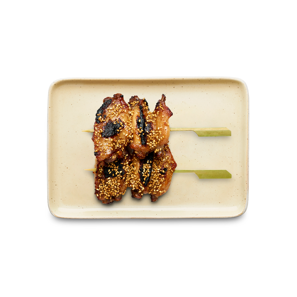 Chicken wings marinated in garlic, ginger, soy & mirin, with soya sesame